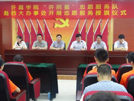 6月29日上午,许昌学院“许院星”赴金地社区志愿服务队于社区办事处会议室举行了启动仪式。许昌学院团委书记张鹏辉,许昌学院法政学院党总支副书记王彦,团总支书记黄春建与魏都区、西大办事处有关领导出席了仪式。仪式由实践队带队老师史函玉主持。