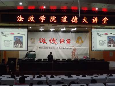 为加强思想道德建设的感染力和吸引力,引导我校师生积极投身道德建设活动,11月27日晚,法政学院传统道德讲堂在学术报告厅成功开讲。法政学院共有300余名学生共同参与了此次道德讲堂活动。此次活动由法政学院副教授、武汉大学哲学博士谢永鑫主讲。